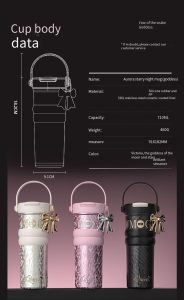 Attractive Cartoon Insulated Coffee Water Bottle, 530ml Large Capacity 316 Stainless Steel Thickened Straw Cup for Home
