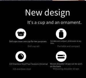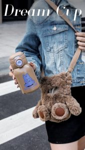 – With Plush Doll Sleeve, Carrying Loop, Lockable Lid, Straw, Comes with a Shoulder Strap
